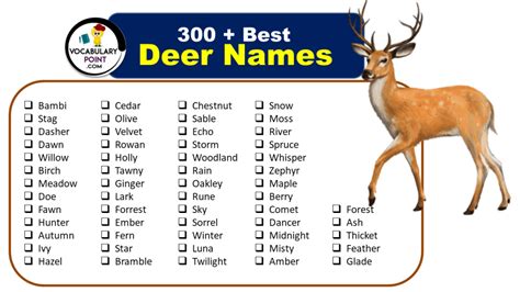 In conclusion, deer names are not just arbitrary labels; they carry cultural, historical, and symbolic significance. They reflect the awe-inspiring qualities of these graceful creatures and enable us to connect with them on a deeper level. Whether you're seeking a name for a new pet or simply curious about the origins and meanings of deer names, exploring this fascinating world can be a rewarding and enriching experience.